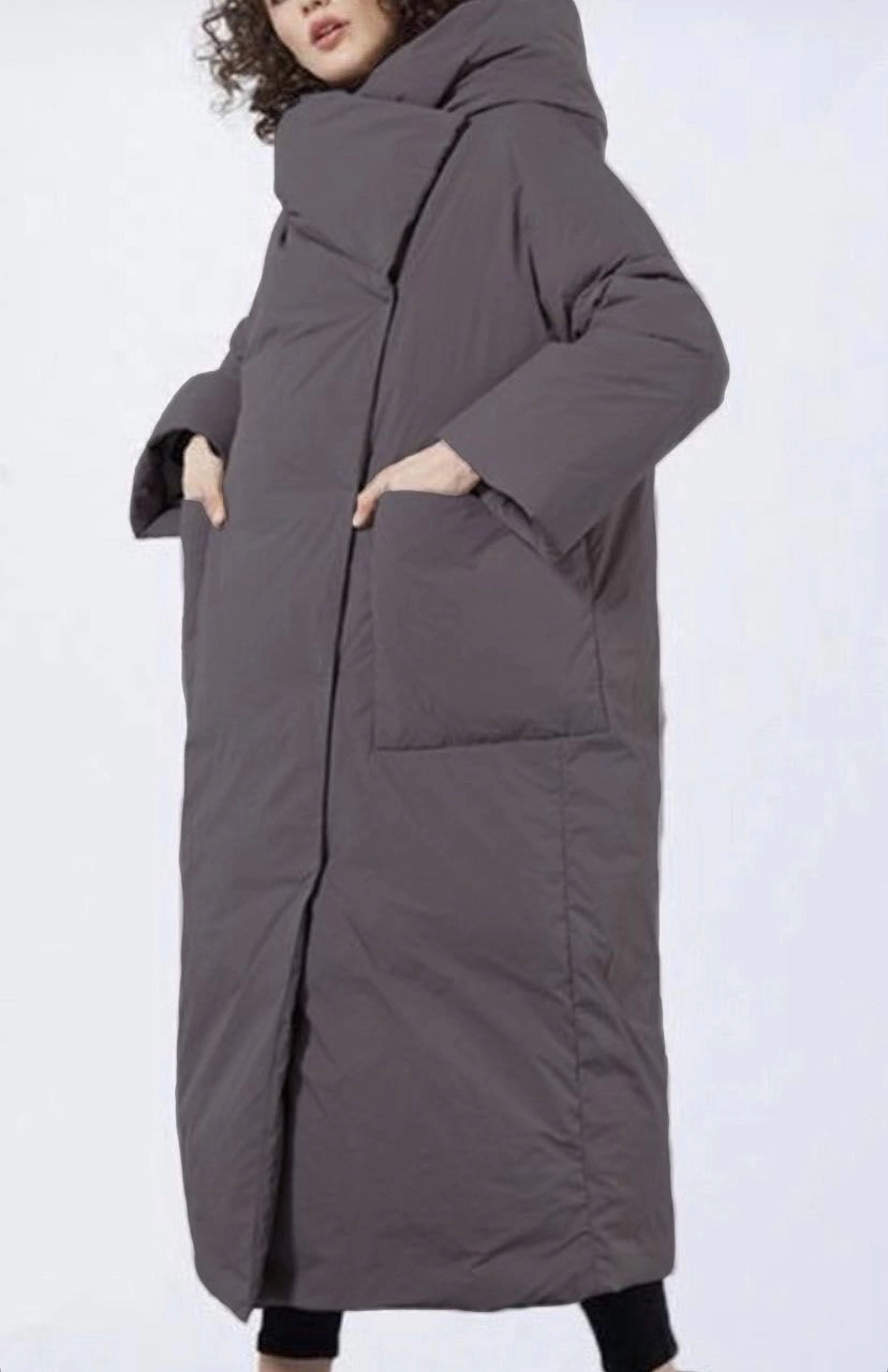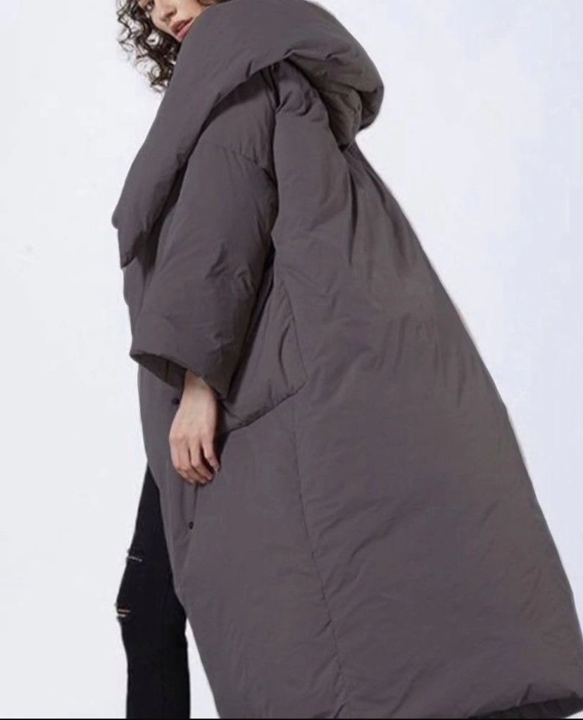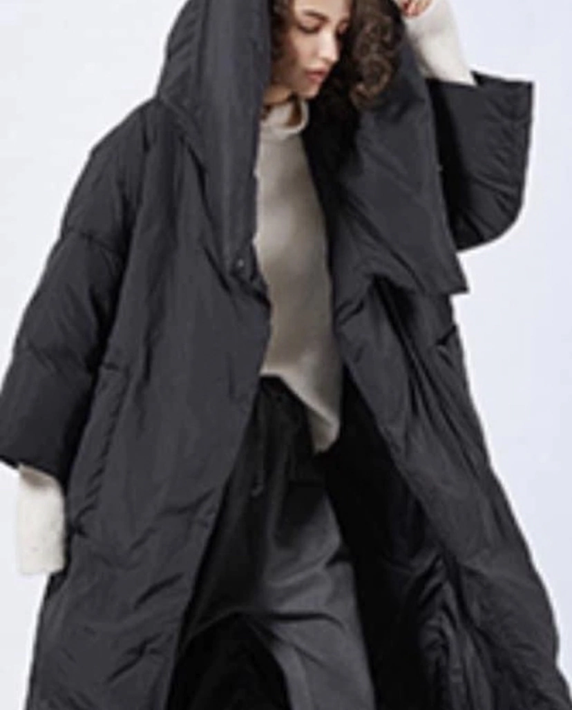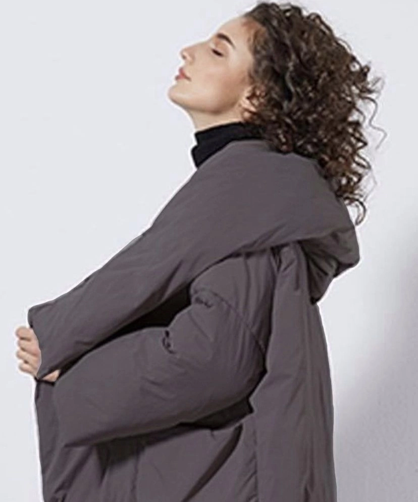 Para que la prenda sea funcional y comoda, tiene un cierre interno y además cierra con broches que están colocados de manera asimétrica para darle volumen a la capucha.