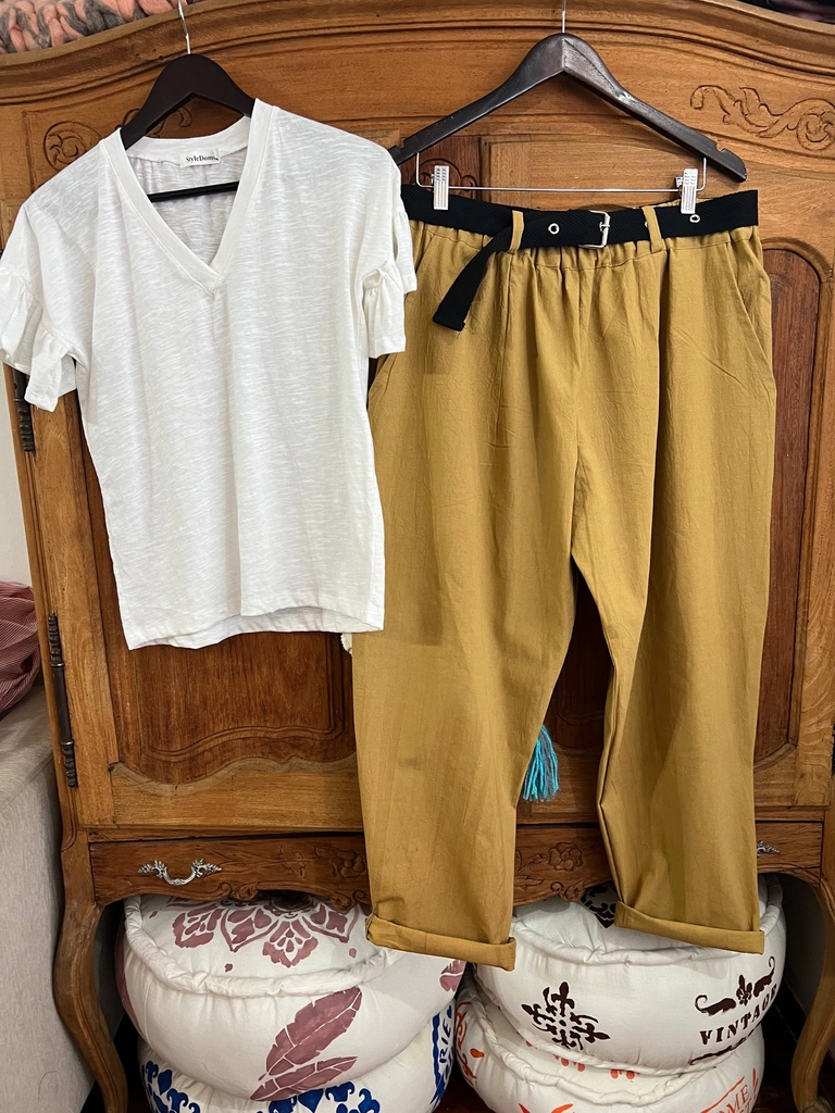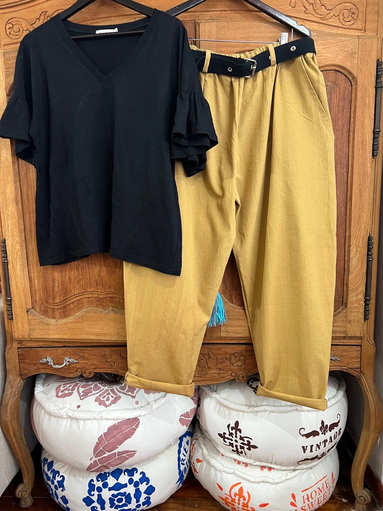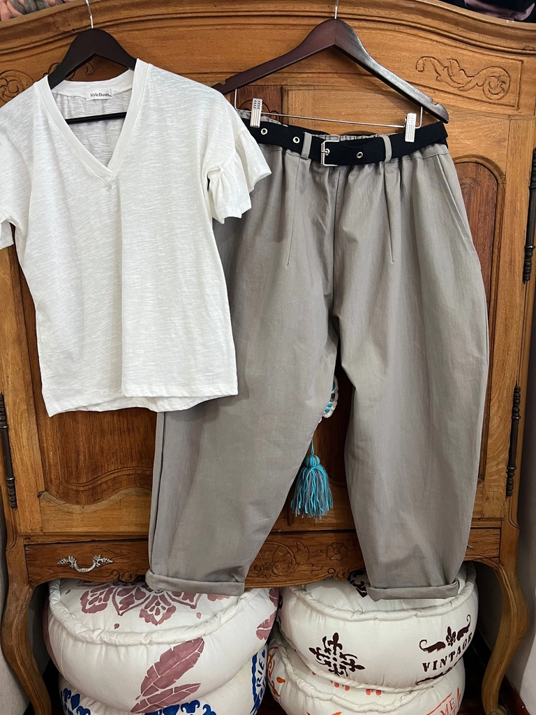 El pantalón Baggi cinturón está confeccionado con gabardina de algodón premium de exportación. El Baggi es de contextura holgada y trae conturon y cintura elastizada.