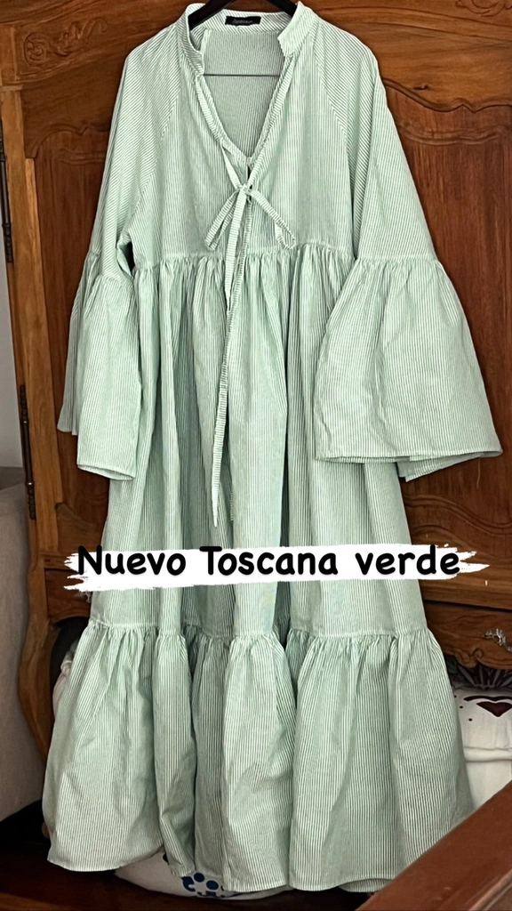El vestido Toscana está confeccionado en Milrayas de algodón. Género liviano, atractivo, con una imagen clásica.