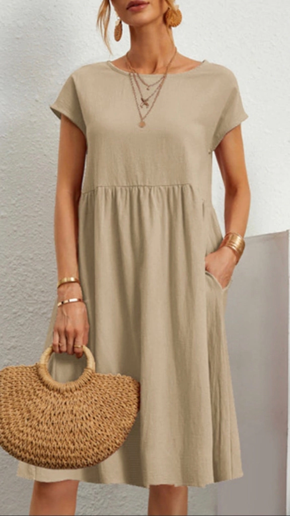 El vestido Viviana está confeccionado en Lino. Tejido confeccionado a partir de fibras vegetales, concretamente de la planta del lino. Es una fibra natural, biodegradable y reciclable que destaca por su resistencia, el doble que los tejidos de algodón. Es suave y ligero. Composición: 80% lino 20% algodón.